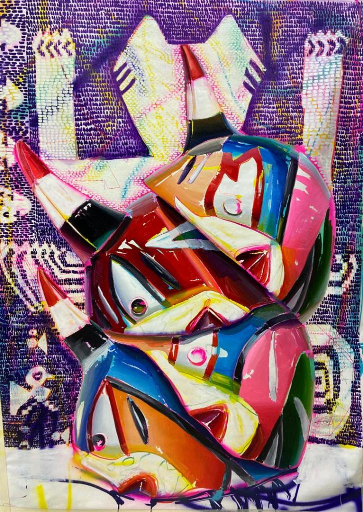 Asimismo, la artista explica que el juego es muy importante tanto en su obra como en su forma de trabajar. “Esta idea se puede encontrar en tres ámbitos. En los elementos representados: la mayoría son piezas infantiles, objetos decorativos o de uso cotidiano; en la forma en que trabajo y cómo doy forma a dichos elementos: los pinto, los rompo, los desfiguro, los ensamblo o los combino de alguna manera, como si jugara con ellos; y en la forma en que abordo una obra: pruebo, borro, vuelvo a pintar, modifico e incluso cubro con spray como si estuviera vandalizando mi propia obra”.
