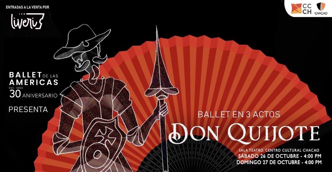 Para celebrar los 30 años de apertura de su centro de formación, Ballet de Las Américas se viste de Quijote y de leyenda, con la puesta en escena de Don Quijote en tres actos, basado en el capítulo XIX del segundo libro de El ingenioso hidalgo Don Quijote de la Mancha, de Miguel de Cervantes Saavedra, el cual se podrá disfrutar los días 26 y 27 de octubre de 2024 en el Centro Cultural Chacao.