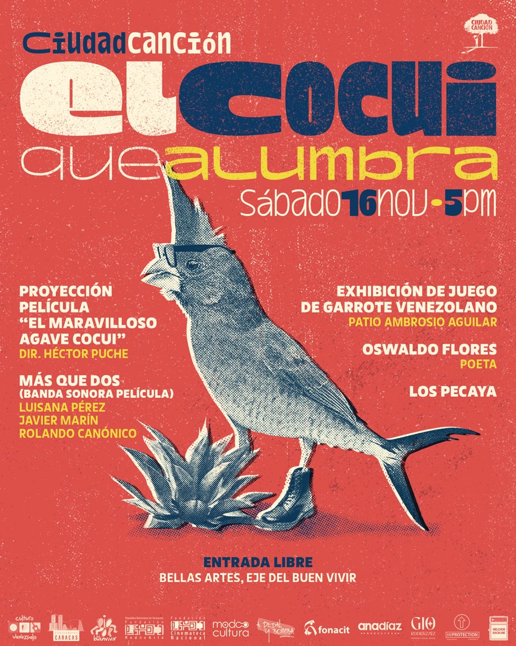 La programación de esta edición de Ciudad Canción, que se realizará el sábado 16 de noviembre a partir de las 5.00 pm en el Eje del Buen Vivir en Bellas Artes, propone un recorrido sonoro, lúdico e histórico que va desde la proyección del documental El maravilloso agave cocui, del director venezolano Héctor Puche. Se trata de una obra que a través de un viaje por los territorios occidentales venezolanos se descubren ante la audiencia las múltiples historias de vida de las familias productoras que desde la resistencia exponen el valor y importancia de una planta sagrada que sobrevivió años de desprestigio y que hoy es la única planta que tiene una ley y su derivado en Venezuela.
