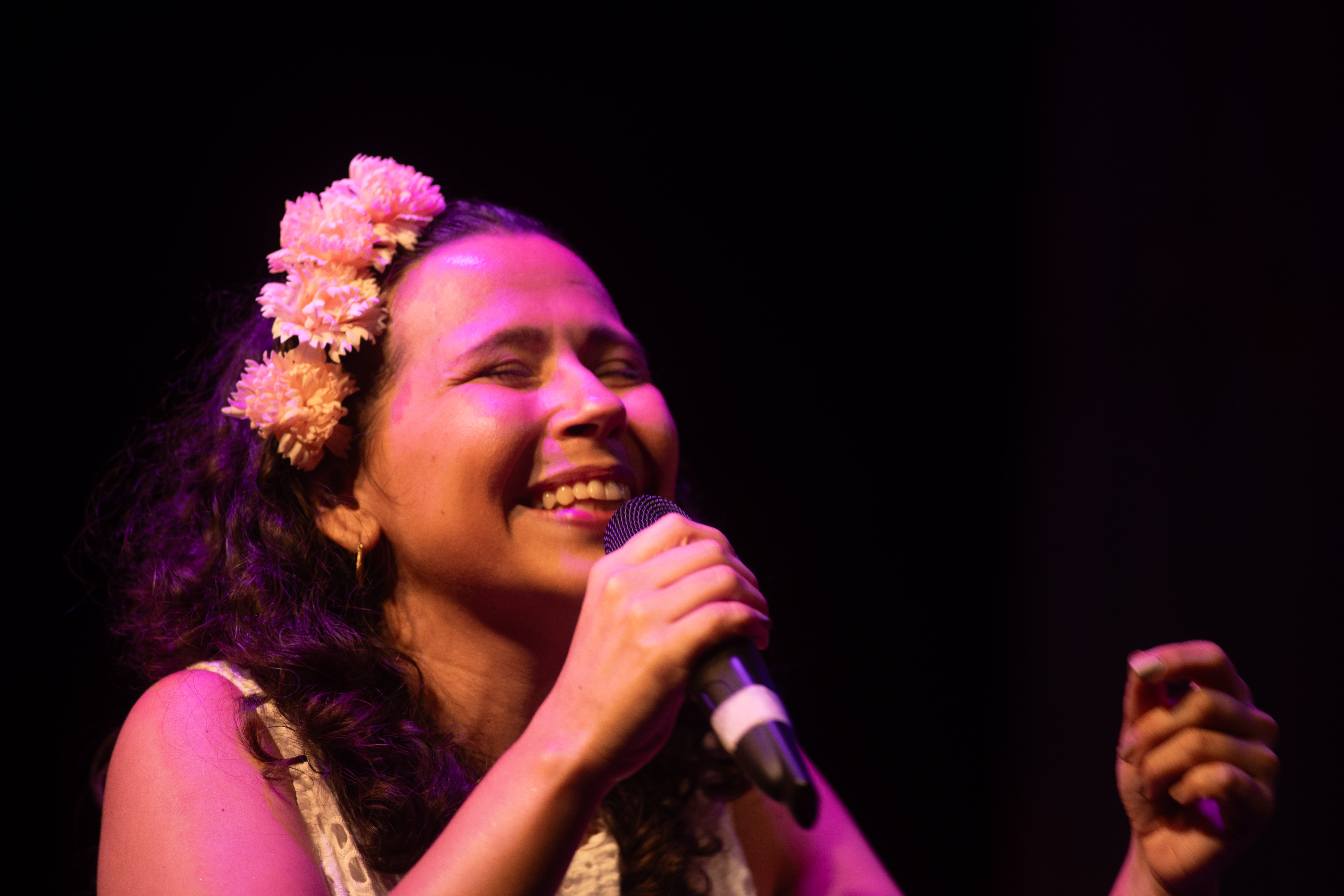 Hay caras conocidas, gente que sigue la carrera de la artista desde hace tiempo, pero también otros más incipientes, como el joven poeta Yeiber Román, quien al culminar el concierto sale de la sala con ganas de tomarse una foto con la artista, pero sin el arrojo suficiente para acercarse. Pide ayuda y lo logra.